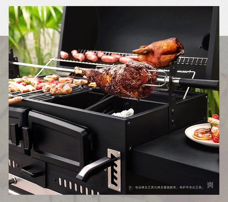 The barbecue system boasts an expansive grilling area, catering to various barbecue needs, whether it’s for large gatherings or intimate family meals.